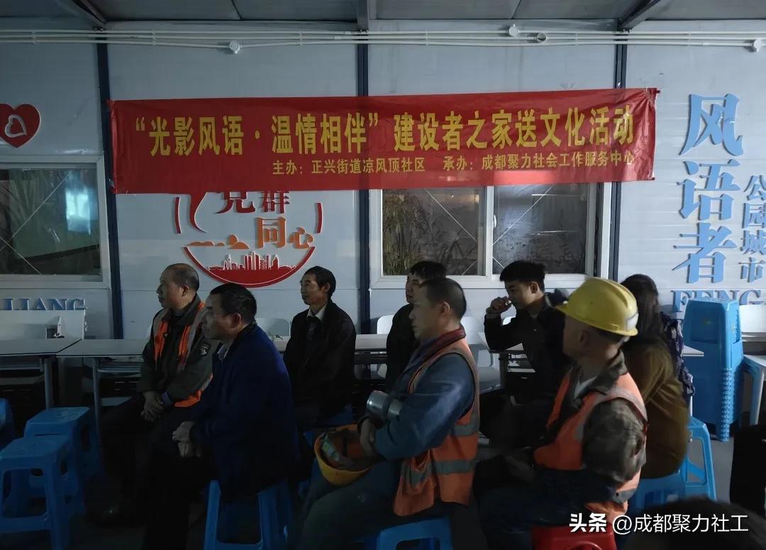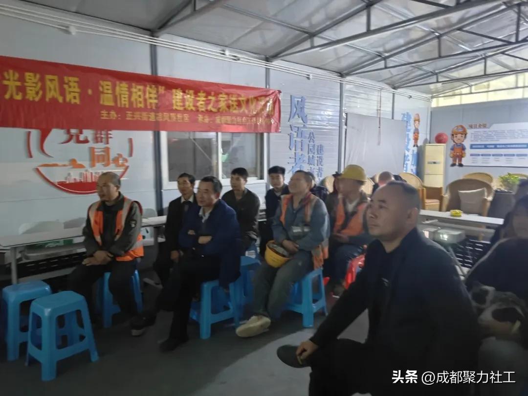 2025年11月27日晚,正兴街道凉风顶社区“风语者·建设者之家”内光影流转、笑声不断。一场以“光影风语·温情相伴”为主题的观影活动在此热烈开展,为20名平日奋战在工地一线的城市建设者,带来了一场充满硬汉热血与团队精神的视听盛宴。